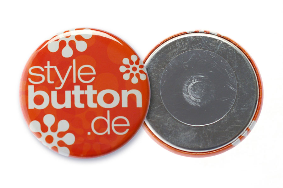 Bei unseren Kühlschrankmagnetbuttons ist in die Rückseite ein kleiner Neodymmagnet plan eingelassen. Er wird von einer silberfarbenen Folie geschützt und besitzt eine Haftkraft von circa 500 g (ein Vielfaches der Haftkraft der ansonsten eingesetzten Magnetfolie). Notizzettel oder Fotos können mit solchen Buttons ohne Probleme auf einem Kühlschrank, Whiteboard oder einer Magnettafel gesichert werden. Trotz der guten Haftkraft lässt sich der Magnetbutton leicht aufnehmen. Dies ist vor allem dann wichtig, wenn der Magnet häufig bewegt oder vom Untergrund abgenommen wird.