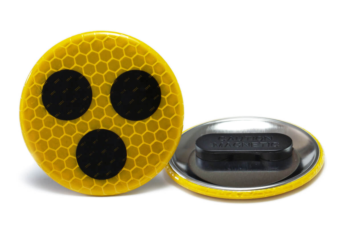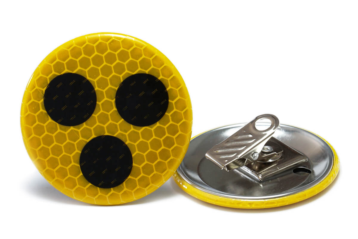 Buttons mit 3 schwarzen Punkten auf gelbem Untergrund sind deutschlandweit als Kennzeichnung für Sehbeeinträchtigung etabliert. Ziel ist, dass Verkehrsteilnehmer besondere Rücksicht walten lassen. Doch mit zunehmender Dunkelheit sind die üblichen Blindenanstecker immer schwerer zu erkennen. Zur Erhöhung der Sicherheit besitzen unsere reflektierenden Blindenbuttons deshalb eine besondere Schicht, die auftreffendes Licht von Fahrzeugen oder Fahrrädern reflektiert. So können andere Verkehrsteilnehmer das Blindenzeichen mit den drei Punkten bei schlechten Lichtverhältnissen leichter erkennen und entsprechend Rücksicht walten lassen.