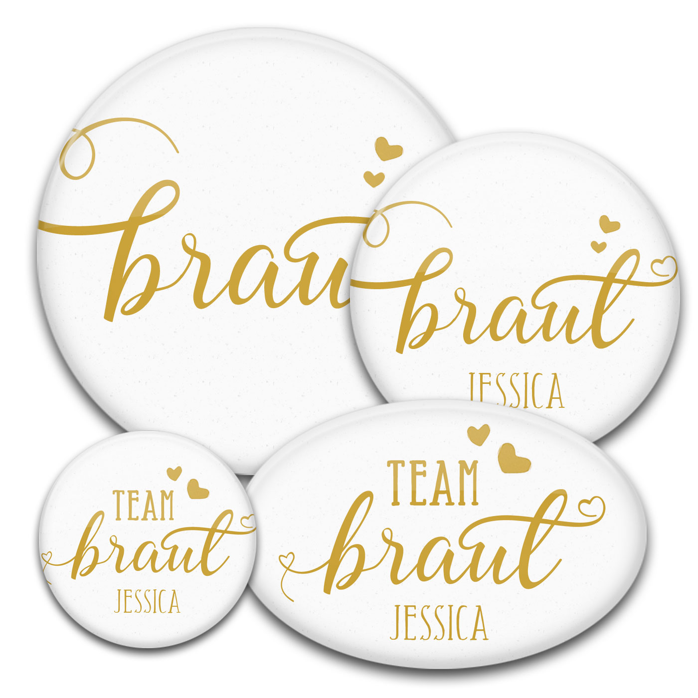 Der Brautbutton ist etwas größer als der Teambutton. So ein Button ist nichts womit man sich unwohl fühlt, sondern ein schlichtes, elegantes und hübsches Accessoire. Ein kleiner Eyecatcher :-).