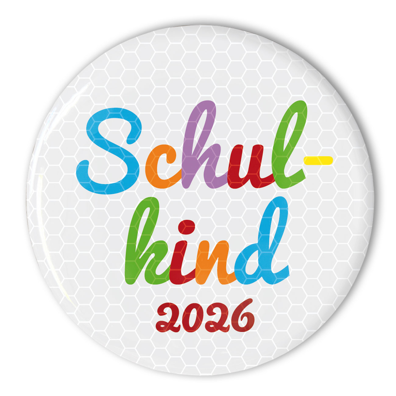 Reflektierender Schulkind-Button: für mehr Sicherheit im Straßenverkehr. Der weiße Reflektor für Kinder ist mit dem bunten Schriftzug “Schulkind” und der gewünschten Jahreszahl bedruckt. Mit 56 mm Durchmesser ist er ein cleveres Geschenk und günstige Dekoration für die Schultüte kleiner Schulanfänger.