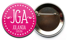 Ovale Buttons haben eine Abmessung von 70 x 46 mm und die rechteckigen Anstecker sind 70 x 25 mm groß.