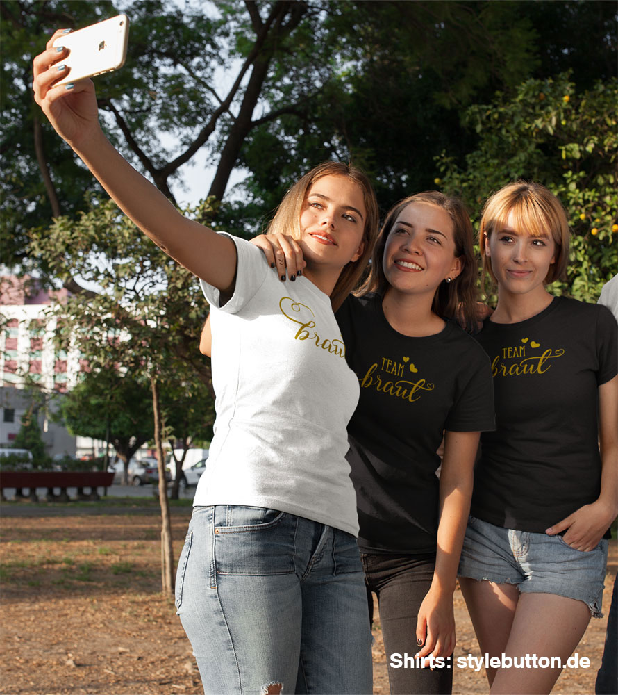 Falls Ihr nur das Brautshirt kauft, empfehlen sich zur Kennzeichnung des Teams unsere JGA-Buttons #27.