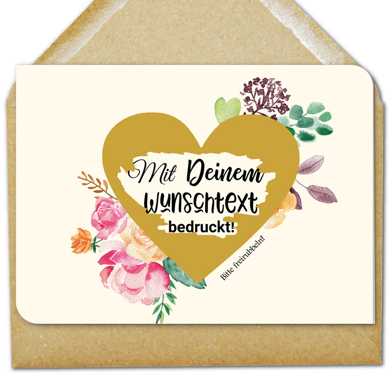 personalisierte Rubbelkarte floral mit goldenem Herz